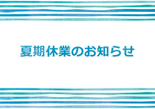 誠に勝手ながら、下記の通り夏期休業いたします。 【夏期休業期間】 2024年 8月10日(土) ~ 8月18日(日)