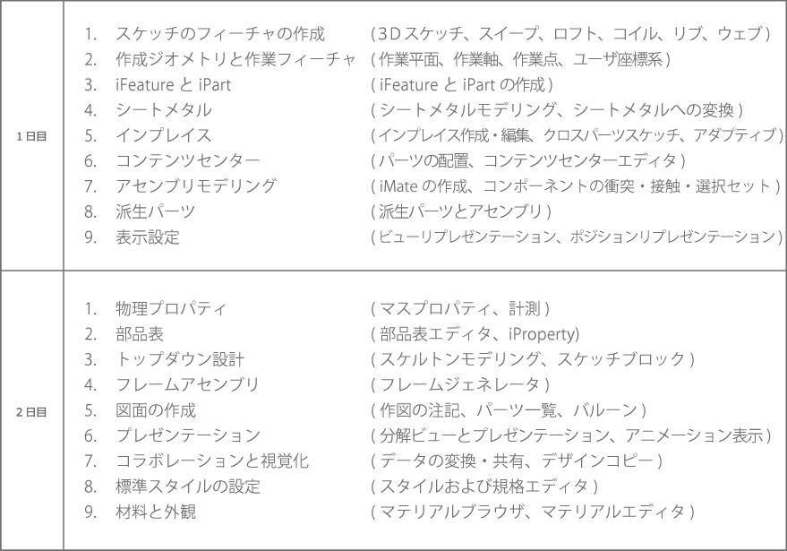 Autodesk Inventor の出張講習です。3Dスケッチ、フリーフォーム、トップダウン設計など発展的なカリキュラムをご用意。